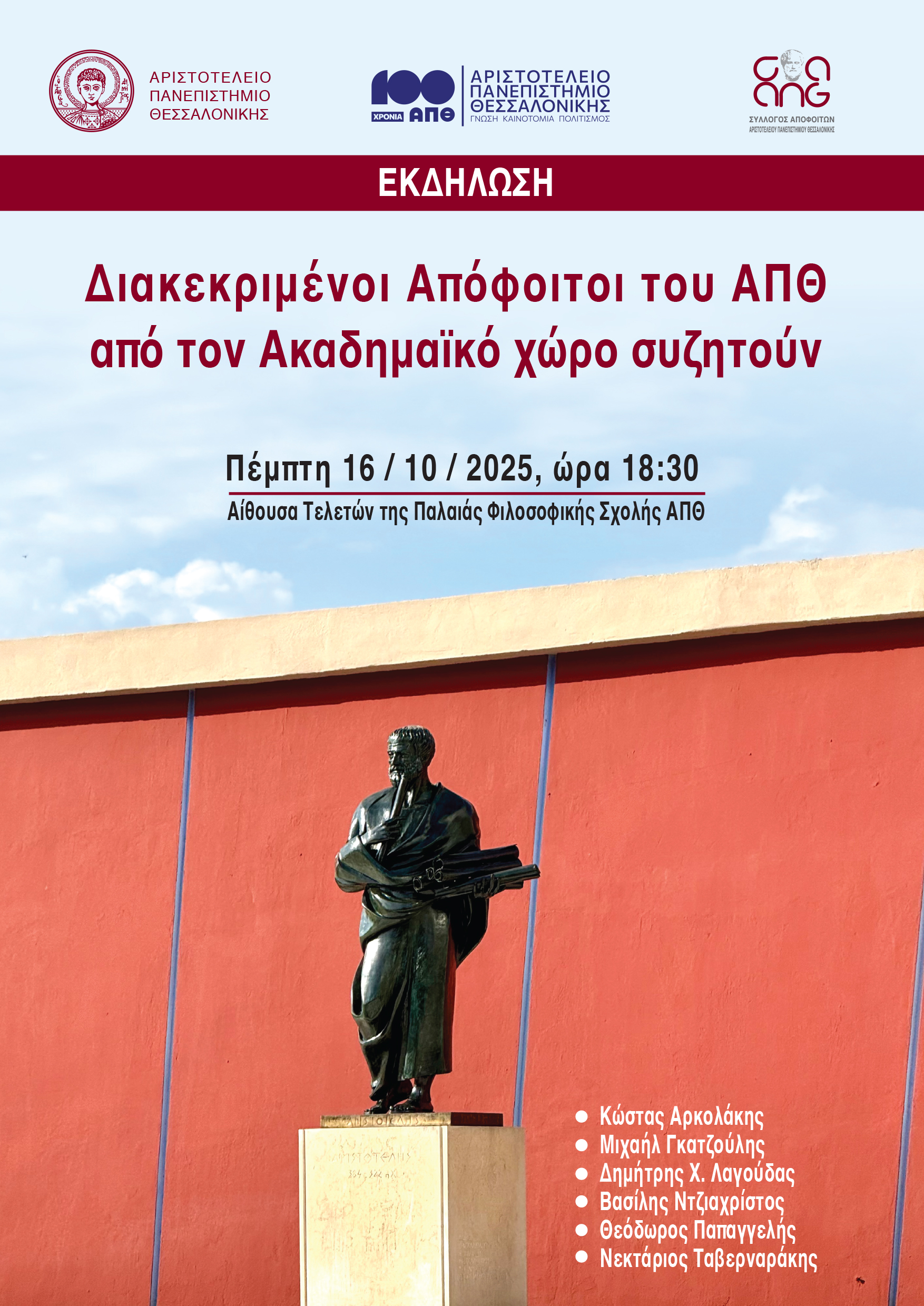 16 Οκτωβρίου 2025: Συζήτηση επιφανών αποφοίτων/ακαδημαϊκών για το επιστημονικό μέλλον του ΑΠΘ στα βασικά επιστημονικά πεδία.